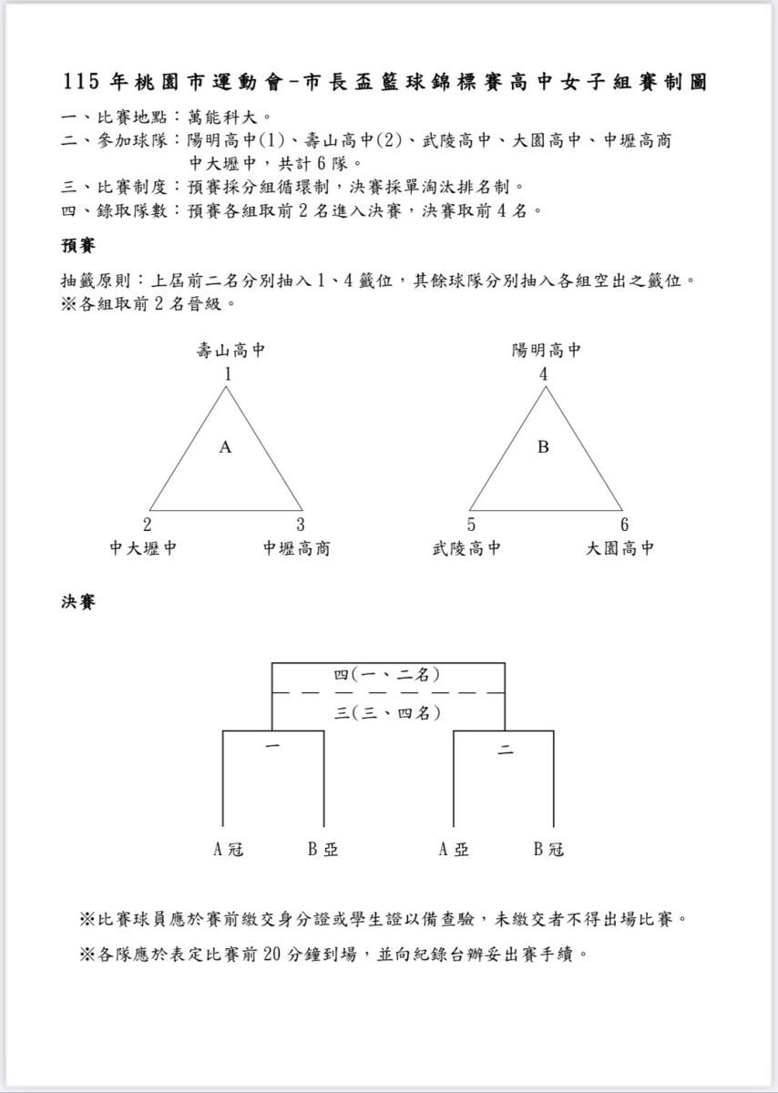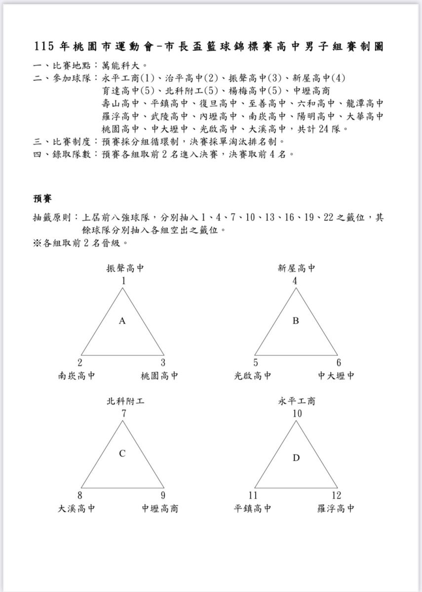 📣115年 市長盃 - 高中組賽制圖
